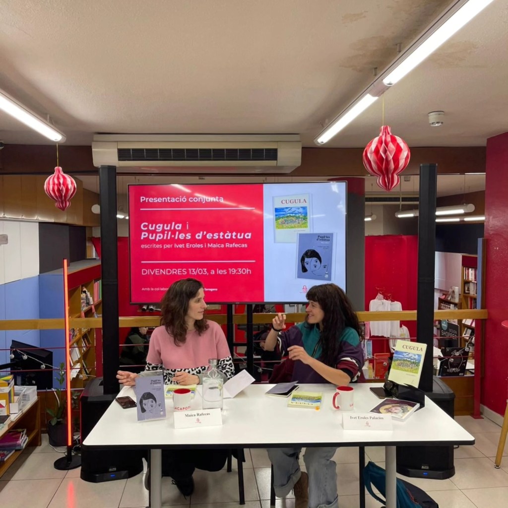 7. Presentació amb la bèstia de la Maica Rafecas a la Llibreria La Capona (Tarragona). Gràcies, amics i amigues, per aquesta presentació en família i per l’acollida dels nostres llibres “Cugula” ( Editorial Fonoll) i “Pupil·les d’Estatua” ( Edicions Tremendes).