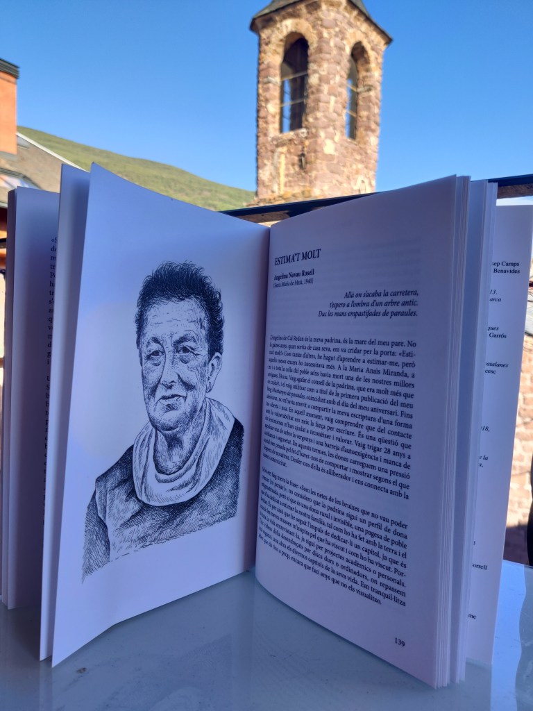 I és que n’explicava tantes de coses, la padrina! A voltes, conjugava el verb “fer”, com ho fan al Pallars. Deia “fèvem”. A mi això em resultava inusual, sorprenent, i em feia parar compte amb la seva parla, que mai no seria com la meua. Ella tenia un parlar antic, d’antes, nostrat, que vaig procurar gravar en múltiples entrevistes, per guardar-ne registre.